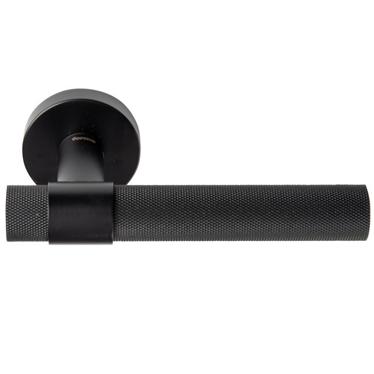 Дверная ручка на круглой розетке 334 Alya Чёрный матовый, материал Латунь, цвет, отделка Черный, 150*52 мм