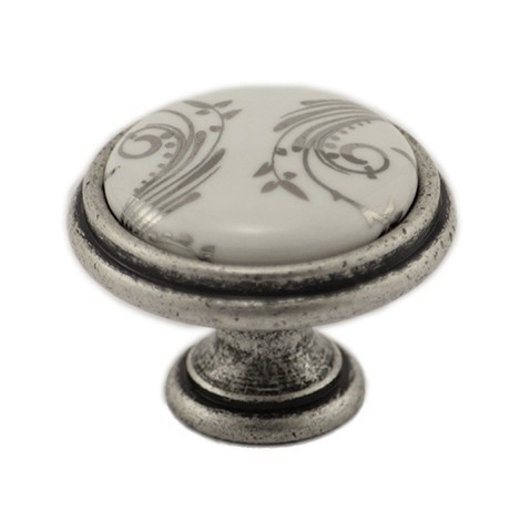 Ручка кнопка P77.00.G8.E8G, материал Замак Керамика, отделка Серебро Керамика, d=35*24 мм